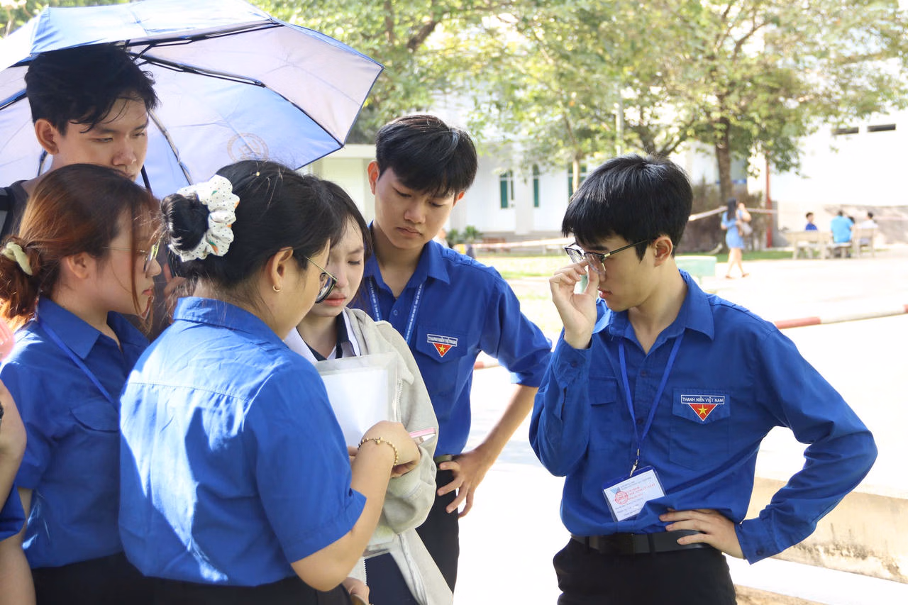 A particularly touching moment from the first day of exams was the unwavering support of the student volunteers. At the University of Information Technology examination center, a minor incident occurred: a candidate had forgotten his ID card and was having difficulty logging into the VNeID application. Thanks to the responsiveness of the team of volunteers who provided him with technical assistance and contacted his family, the candidate was able to complete the formalities on time and access the examination room as planned.