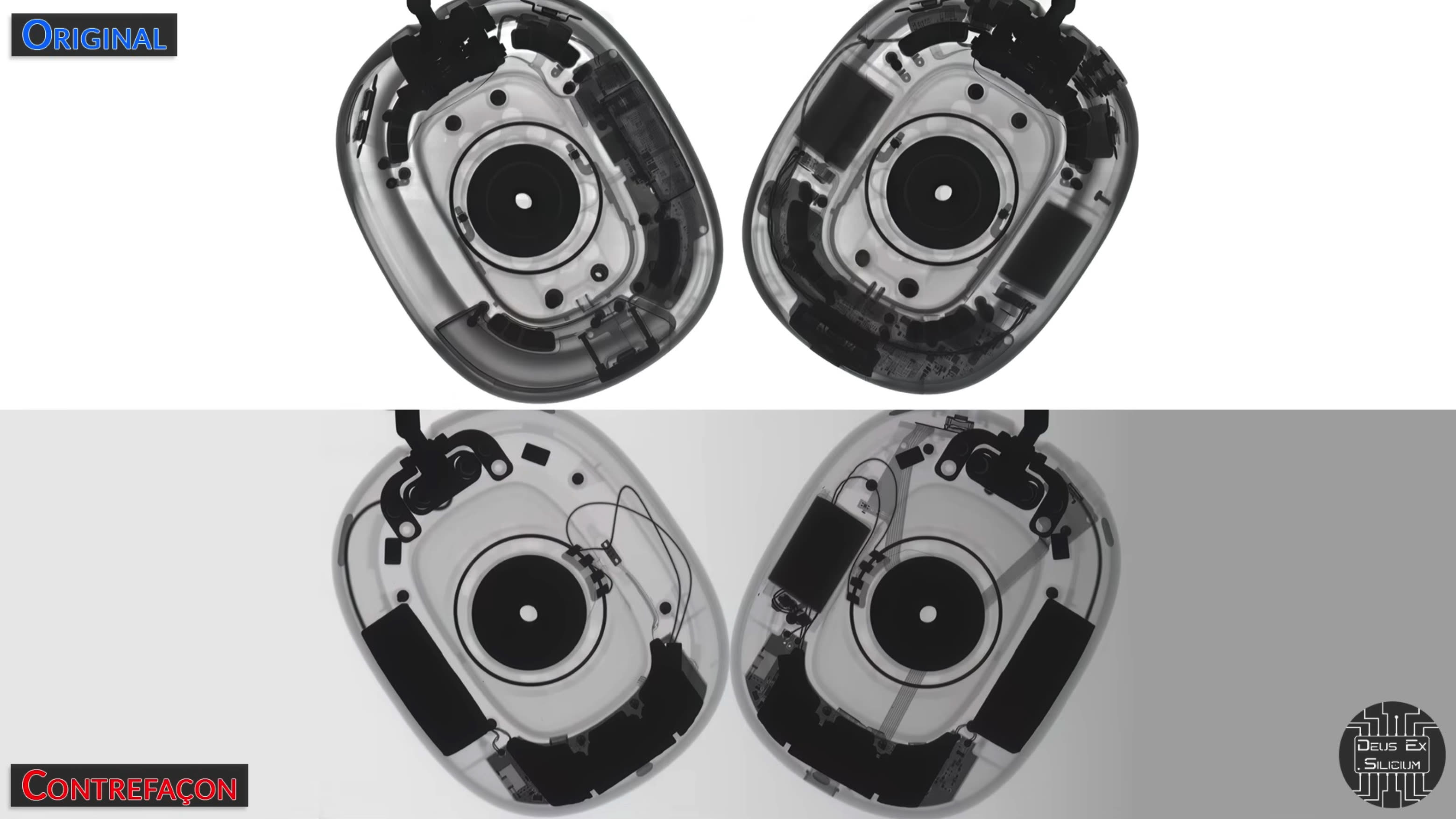 According to Deus Ex Silicium’s analysis, externally, nothing betrays the copy. Even the screws used are identical to those on the original AirPods Max, despite being uncommon. The weight is also the same. However, a first clue appears when clinking the earcups together: the authentic one sounds dense, while the counterfeit sounds hollow – a difference that is difficult to observe without having the original in hand simultaneously.