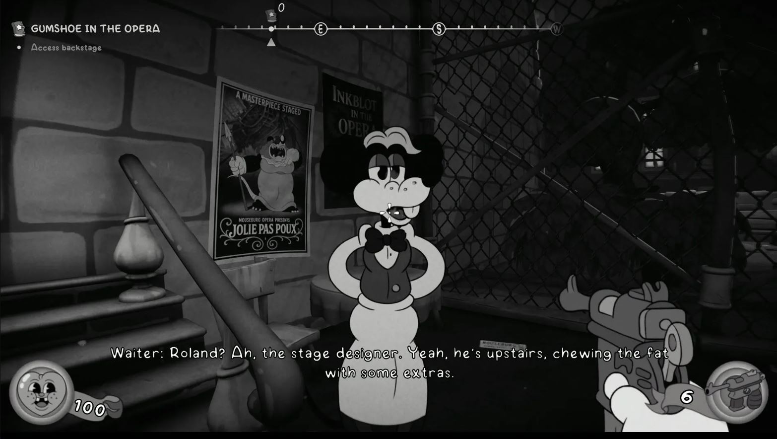 Concerning the gameplay, Mouse PI For Hire presents itself as a “boomer-shooter”, that is to say a linear FPS with frantic action, like the Doom games. In addition to his fists and his revolver, Jack Pepper benefits from a large arsenal of crazy weapons to discover throughout the game, such as the “Devarnisher” which melts the ink of enemies or Popeye-style spinach cans to become invincible, and a range of movements and dodges to avoid dangers.