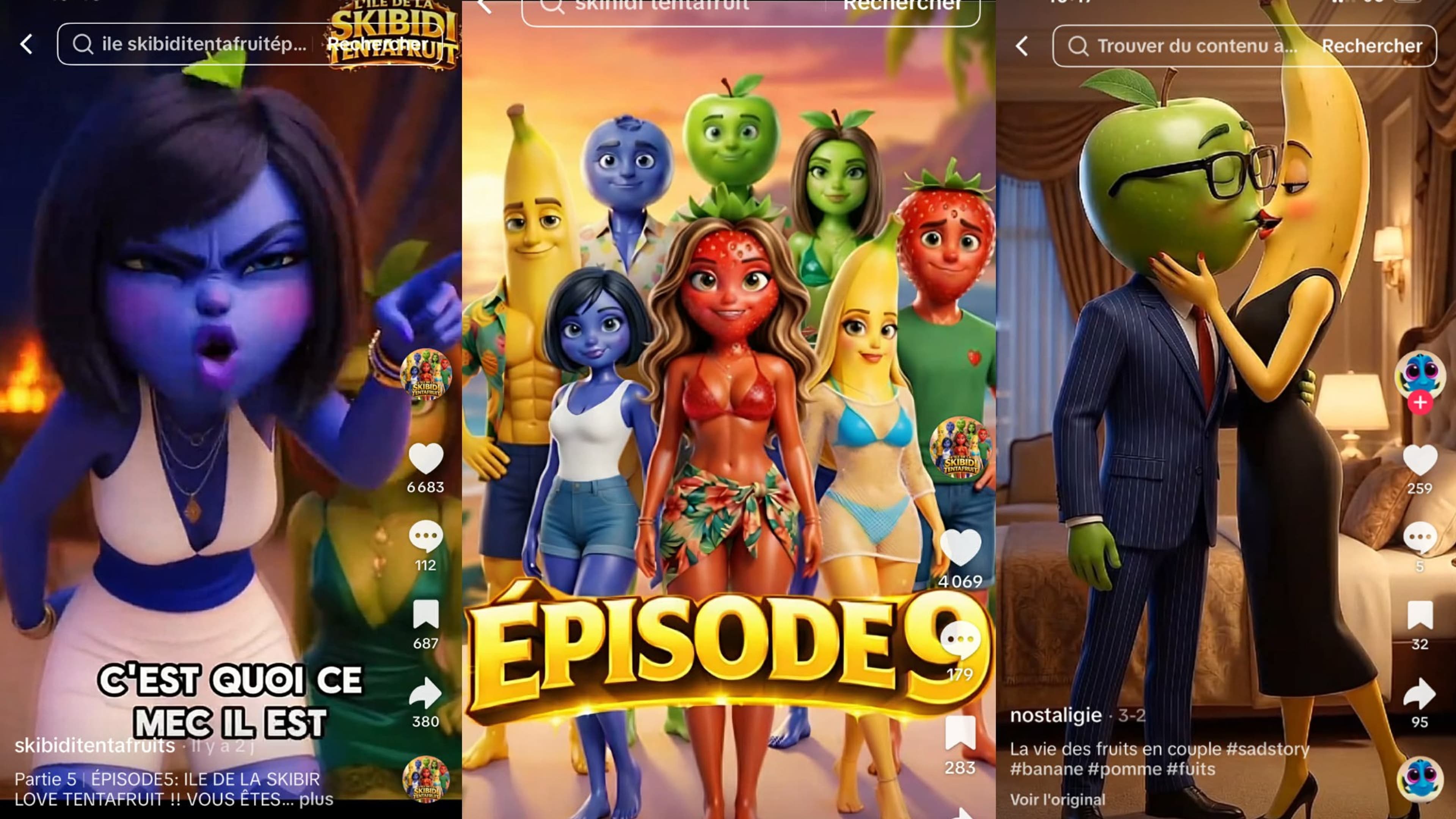 Like her, millions of viewers have been following these anthropomorphized fruits and vegetables videos, often hypersexualized, in recent weeks. These fascinating and absurd contents are quickly becoming addictive. Specialized accounts are multiplying at a rapid pace: some, like “OnlyMoviesFr,” have garnered over 58 million views in a week by adapting the concept of popular reality TV shows like L’Île de la Tentation.