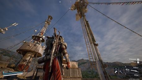 What interests you is on the gigantic antenna overlooking the area. It is possible to reach it from the elevator shaft in the building, or by taking the deployable zip line, to the top of the smaller antiphon located nearby. It allows you to reach hidden equipment as a bonus, making it a good means of access.
