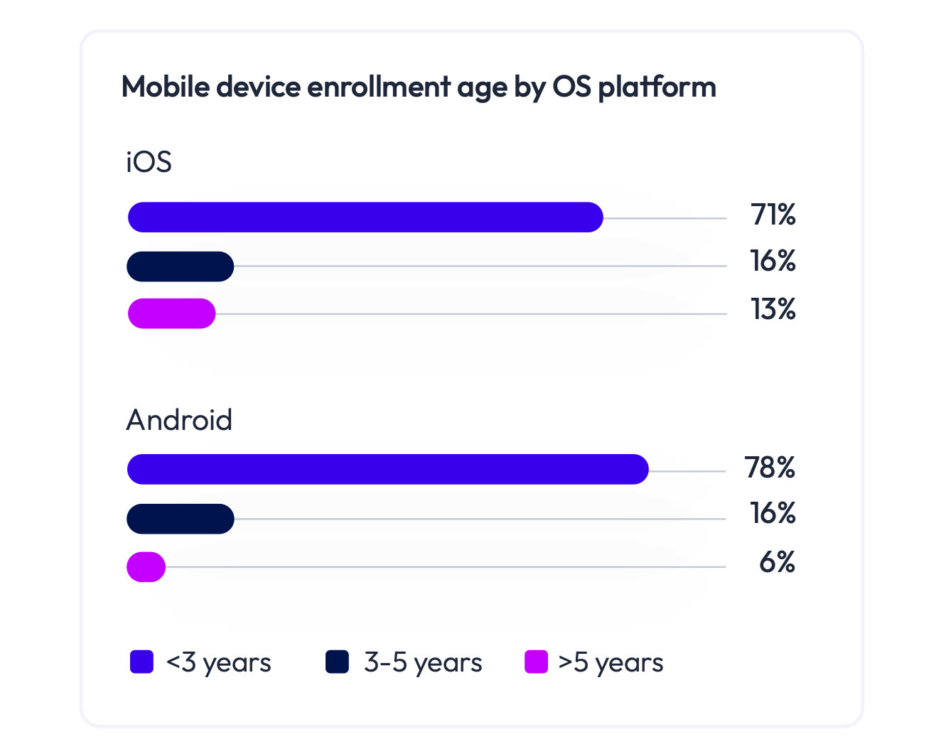 In the iOS world, the difference is less marked: there are 16% of iPhones over three years old (as with Android) and 13% which are over five years old (6% under Android).