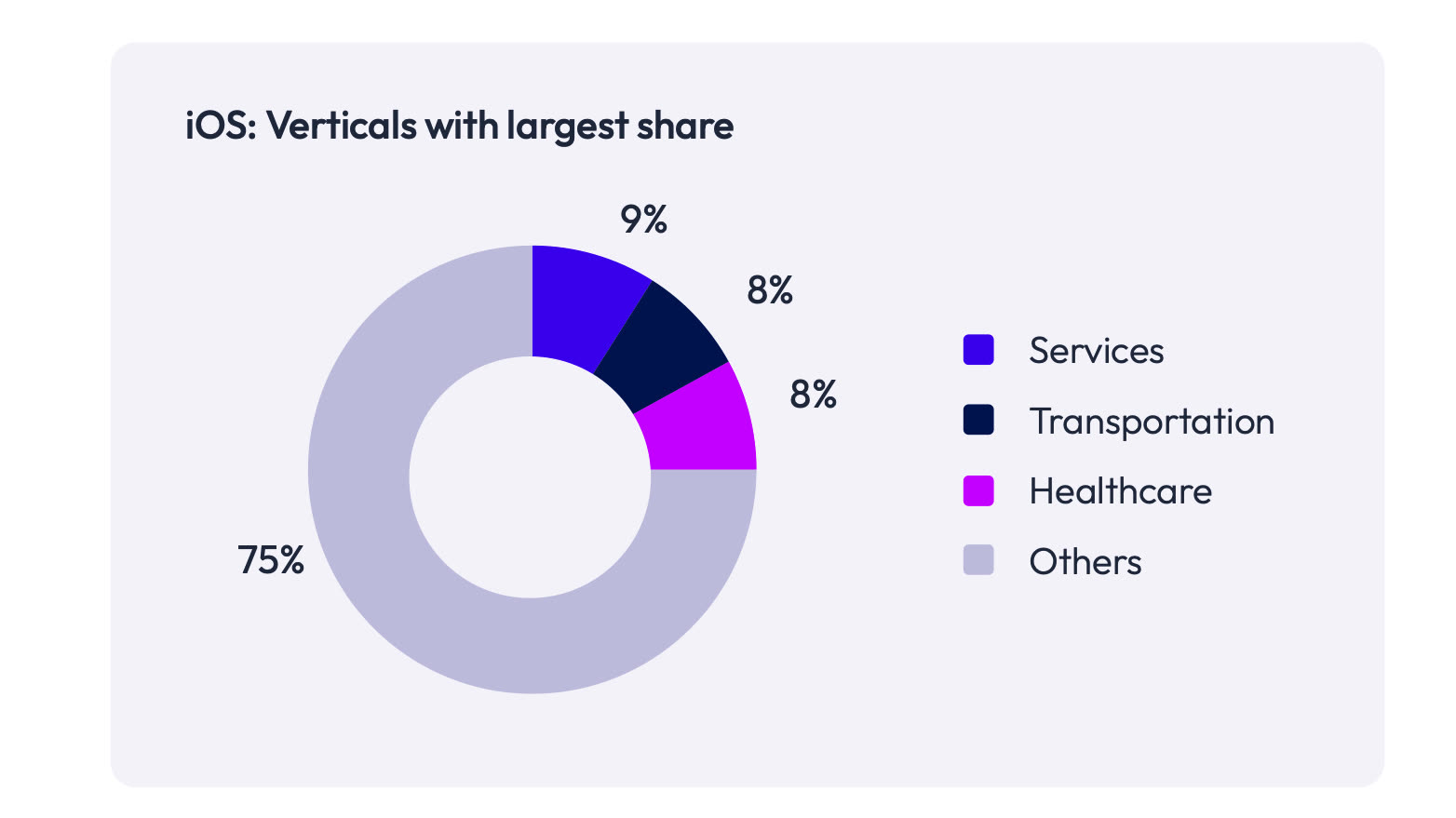 Note that iOS and iPadOS devices are also widely used. In the field of health and transport, market shares are of the same order as Android (8% for iOS, 9% for iOS in health, for example).